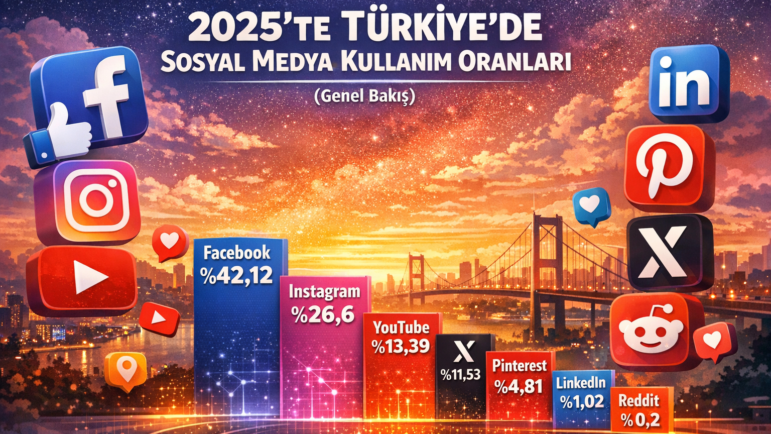 Türkiye’de internet kullanıcılarının büyük bir bölümü en az bir sosyal medya platformunda aktif. 2025 verilerine göre kullanım oranları şu şekilde sıralanıyor