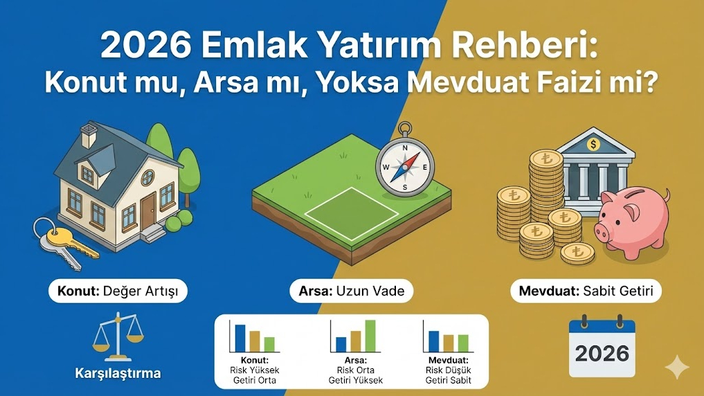 2026 yılında parayı nereye yatırmalı? Konut fiyatları artacak mı, mevduat faizi mi daha karlı? Emlak, altın ve arsa yatırımını karşılaştırmalı analiz ettik.