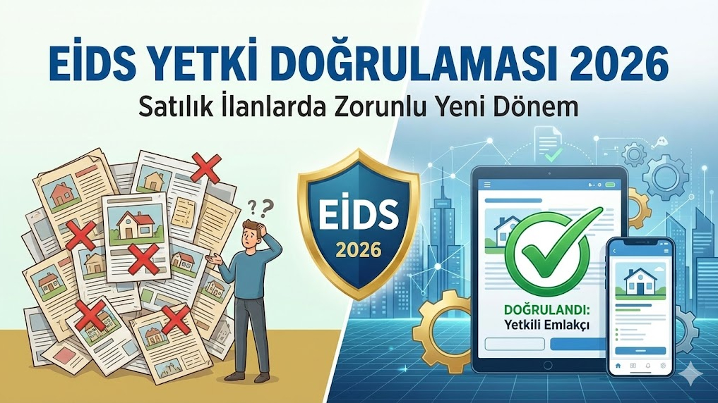 EİDS Yetki Doğrulaması sistemi 1 Şubat 2026 itibarıyla tüm satılık taşınmaz ilanları için zorunlu oluyor. Yeni düzenleme kimleri kapsıyor, ilan sitelerini ve emlakçıları nasıl etkileyecek? İşte tüm detaylar.