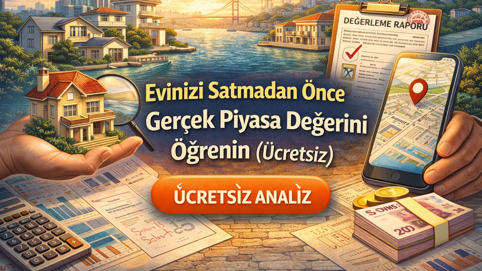 “Evinizi en doğru fiyatla satmak istiyorsanız, ücretsiz değer tespiti için hemen bizimle iletişime geçin. Size 24 saat içinde analiz raporu sunuyoruz.”